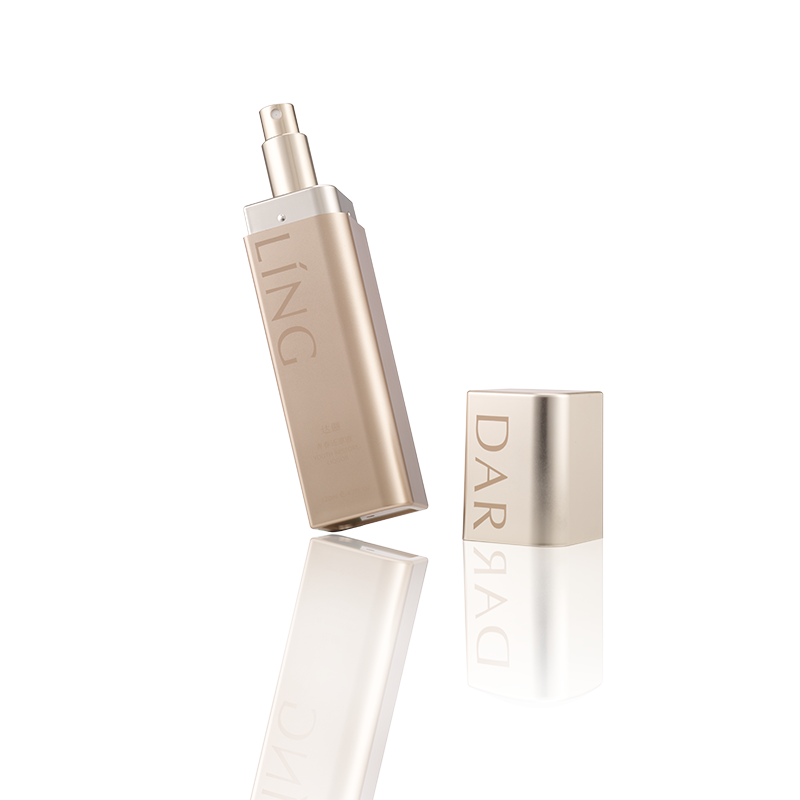 A dual-layer skincare bottle designed with Chinese elements, shaped like a rhombus, compatible with spray pumps for mist and cream.