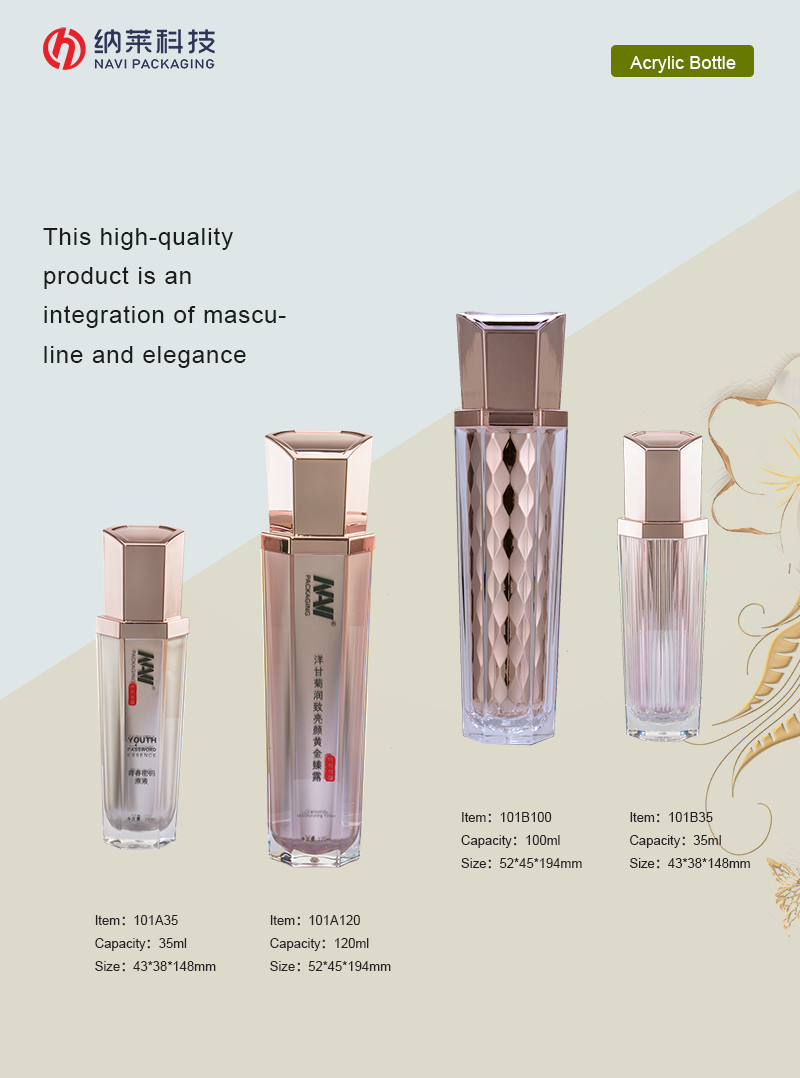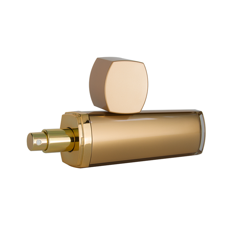 A bottle made of PMMA material, resembling an oval yet slightly square in shape.