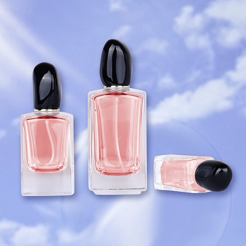 Specialized custom glass bottle featuring a square/4-sided design and an unusual/luxury cap. Engineered for high-quality perfumes requiring specific closures or unique shapes, ensuring product integrity and brand differentiation.