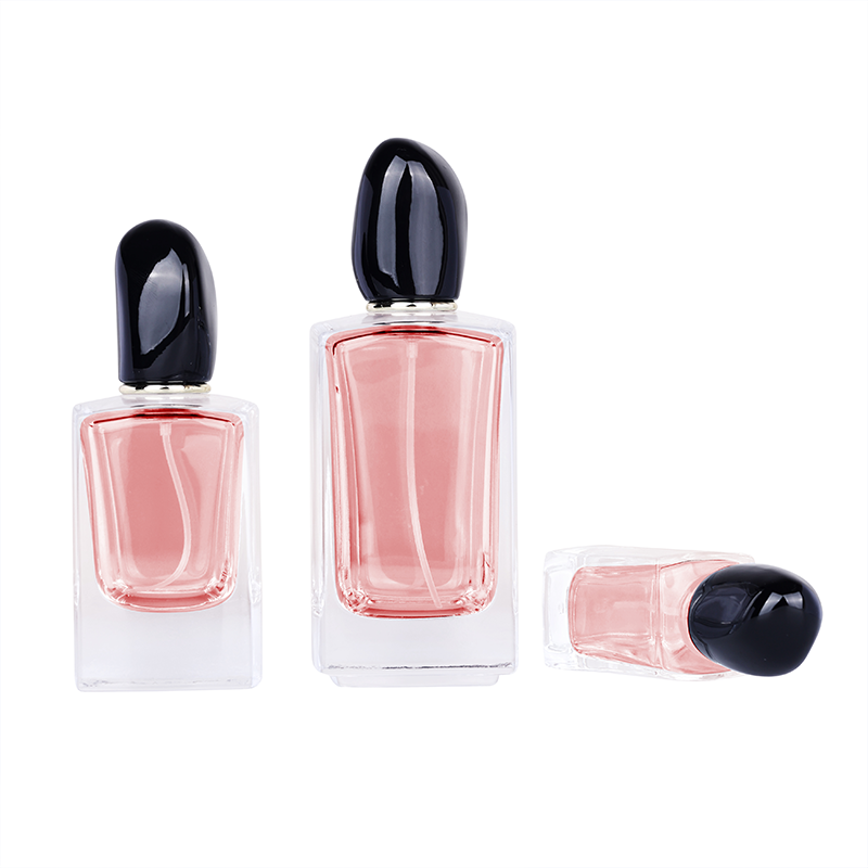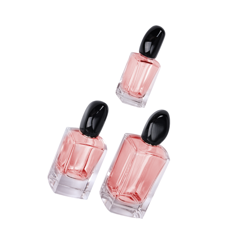Specialized custom glass bottle featuring a square/4-sided design and an unusual/luxury cap. Engineered for high-quality perfumes requiring specific closures or unique shapes, ensuring product integrity and brand differentiation.