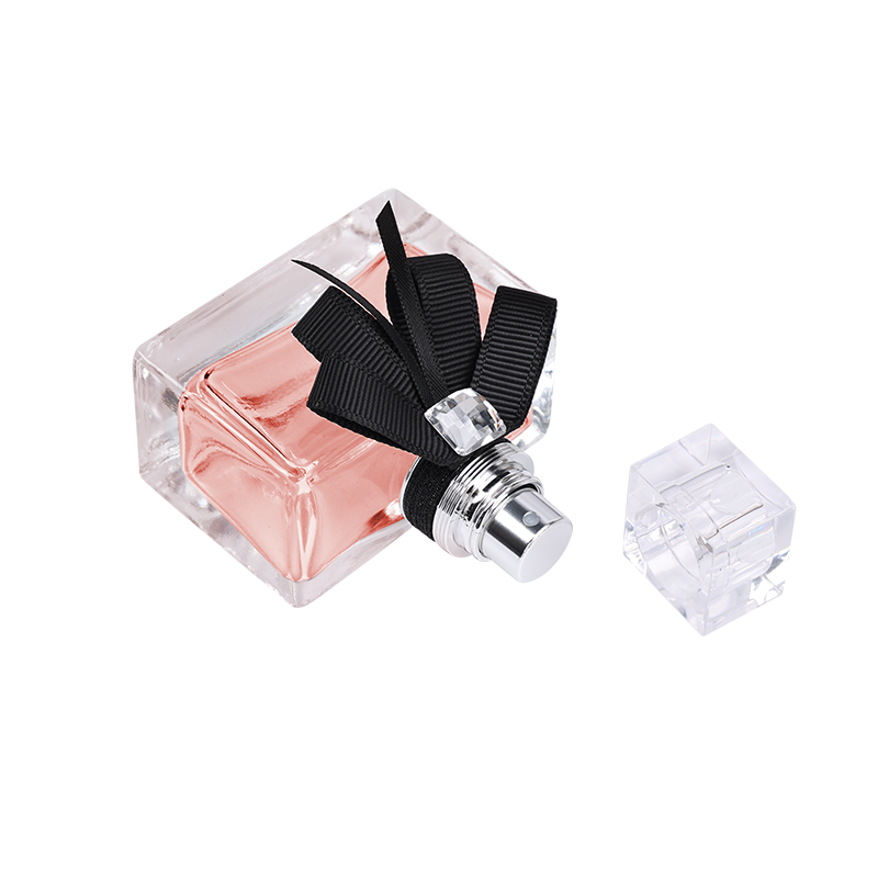 High-end four-sided glass perfume bottle with exclusive/unique cap design. Expertly crafted packaging solution combining durable glass material with specialized components for premium brands.