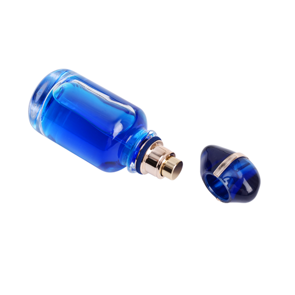 This exquisite round glass perfume bottle features a distinctly shaped cap inlaid with an ornate electroplated decorative ring, adding unparalleled elegance and sophistication. Designed for high-end fragrances, its precision-engineered spray guarantees perfect mist quality for every application.