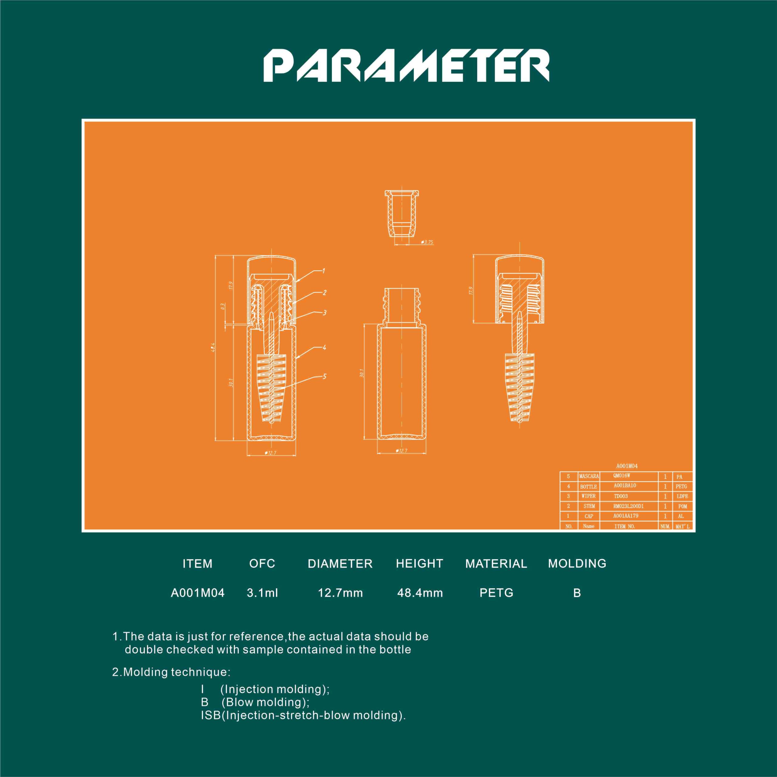 Customizable mascara Tube with PETG Material, Round Shape, 10.7mm Diameter with OFC: 3.1ml