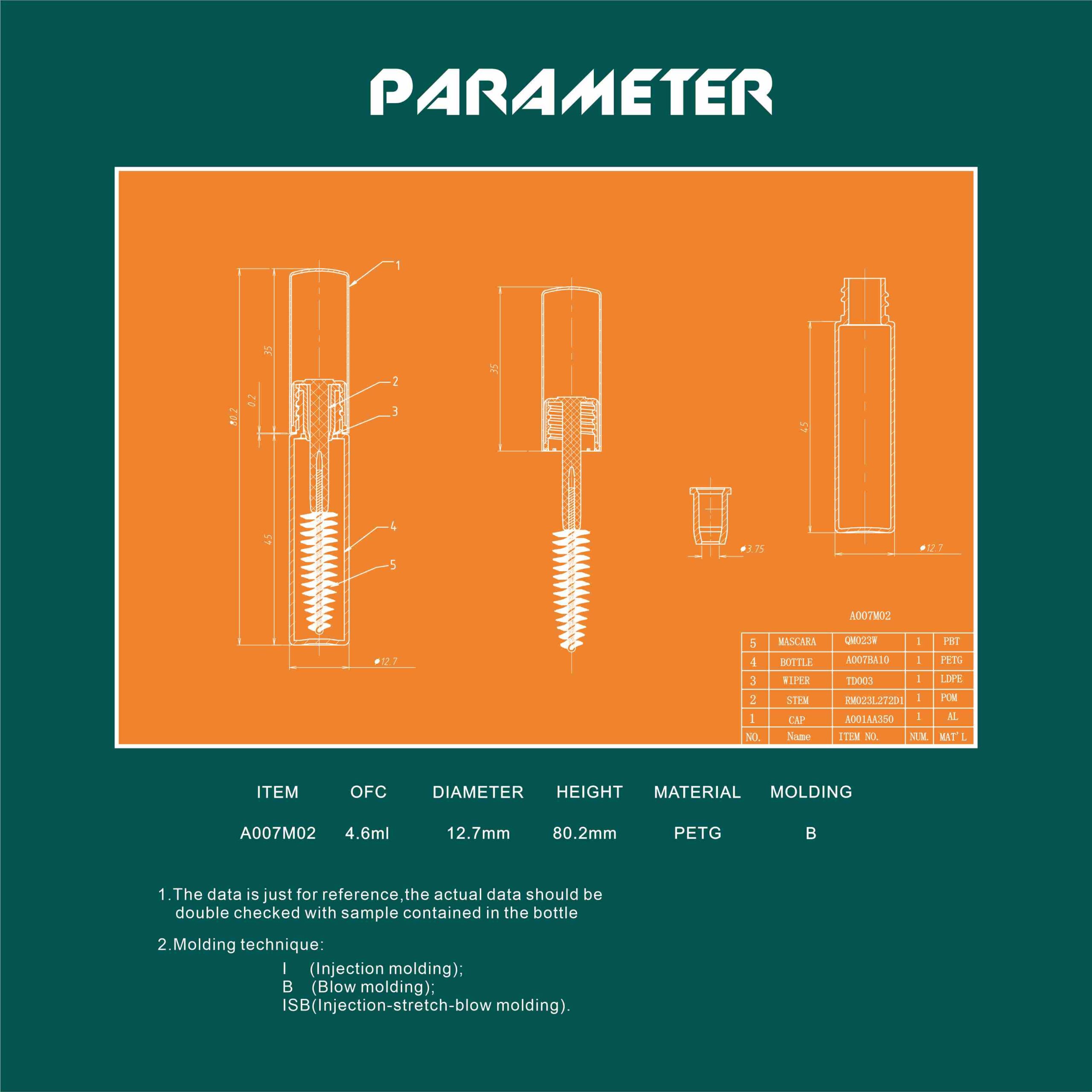 Rectangular mascara Tube with High-Quality PETG, 16.1mm Diameter with OFC:10.3ml