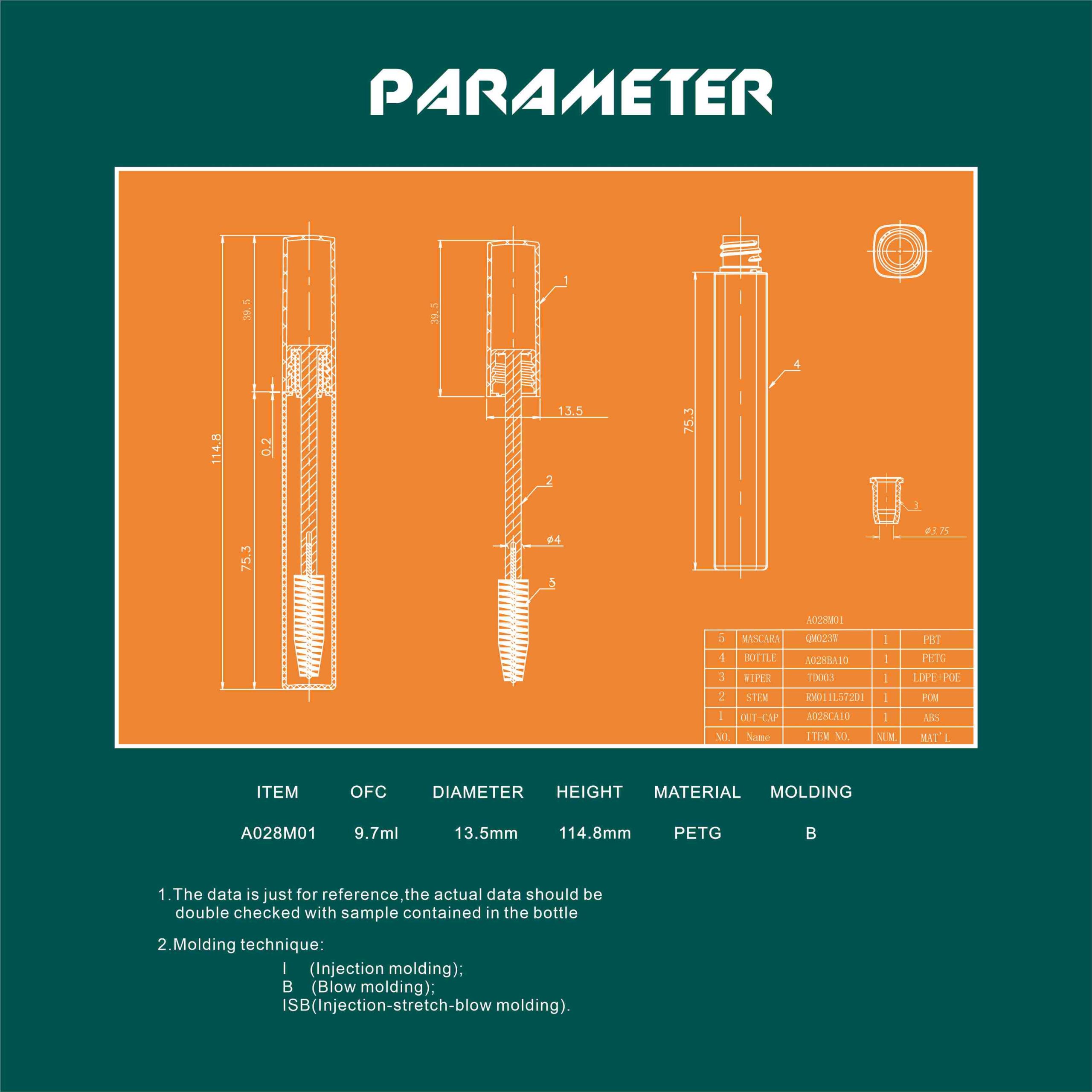 Slim Circular PETG mascara Tube, 13.5mm Diameter, Eco-Friendly with OFC 9.7ml