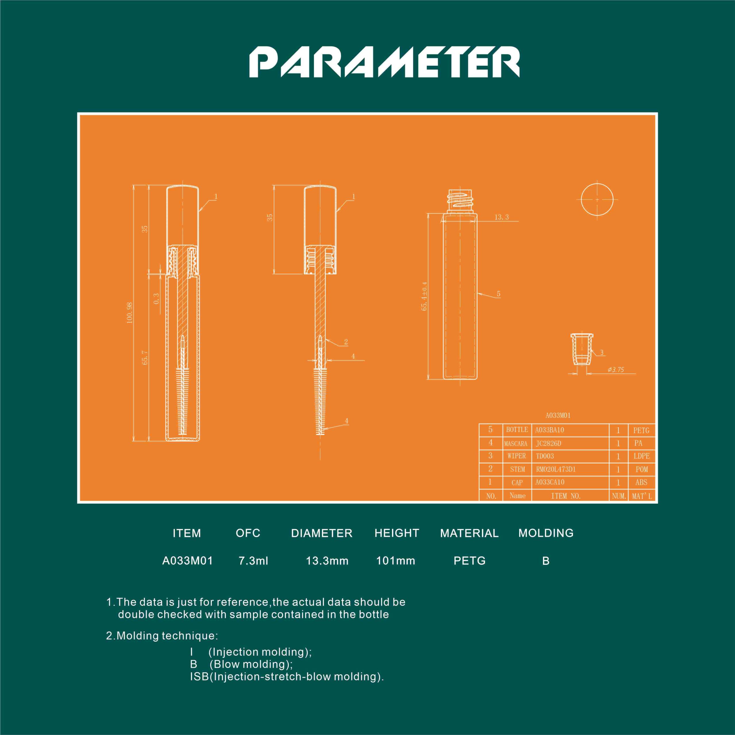 Round PETG mascara Tube, 13.3mm Diameter, Easy to Use and with OFC 7.3ml