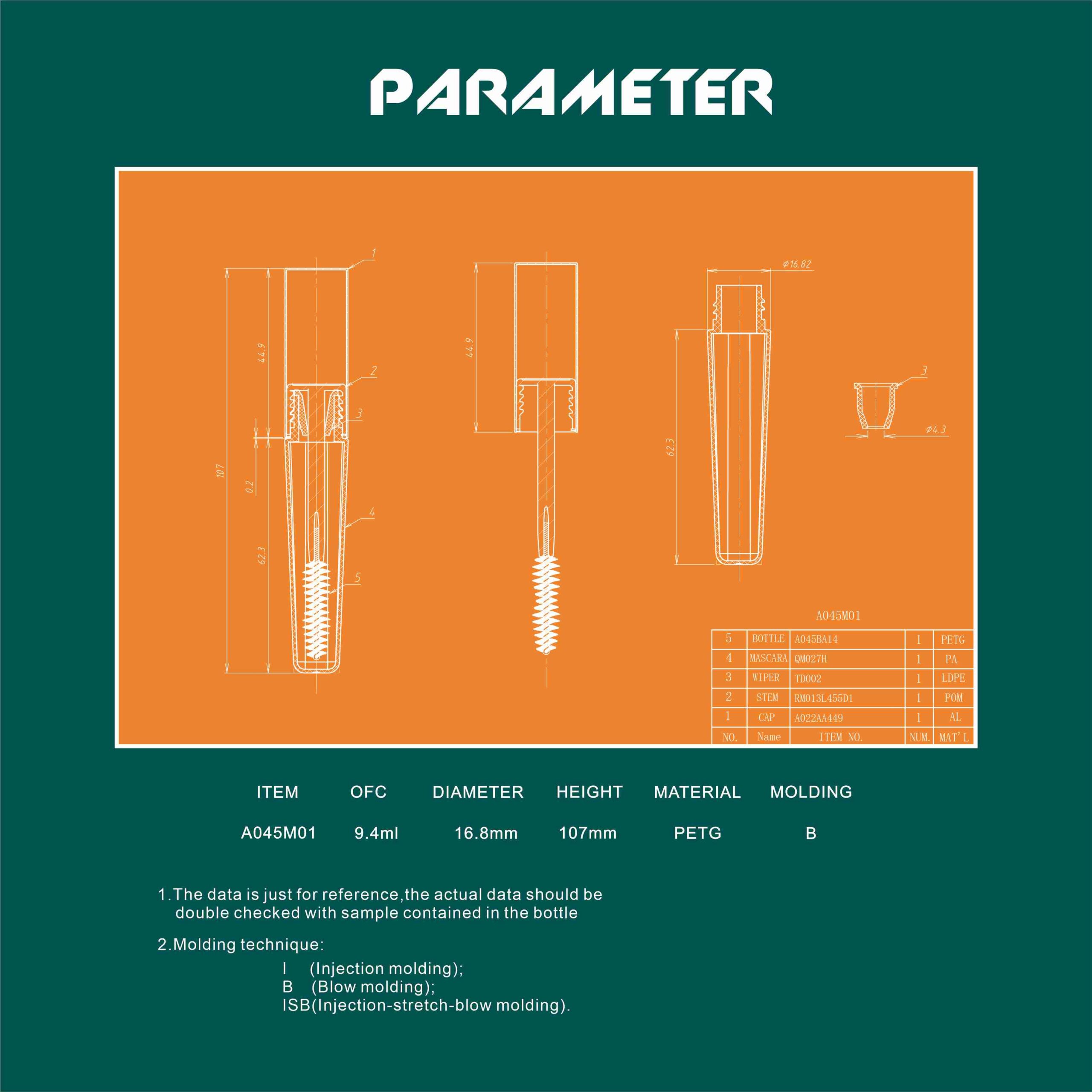 PETG mascara Tube, 16.8mm Diameter, High-Capacity Design with OFC:9.4ml