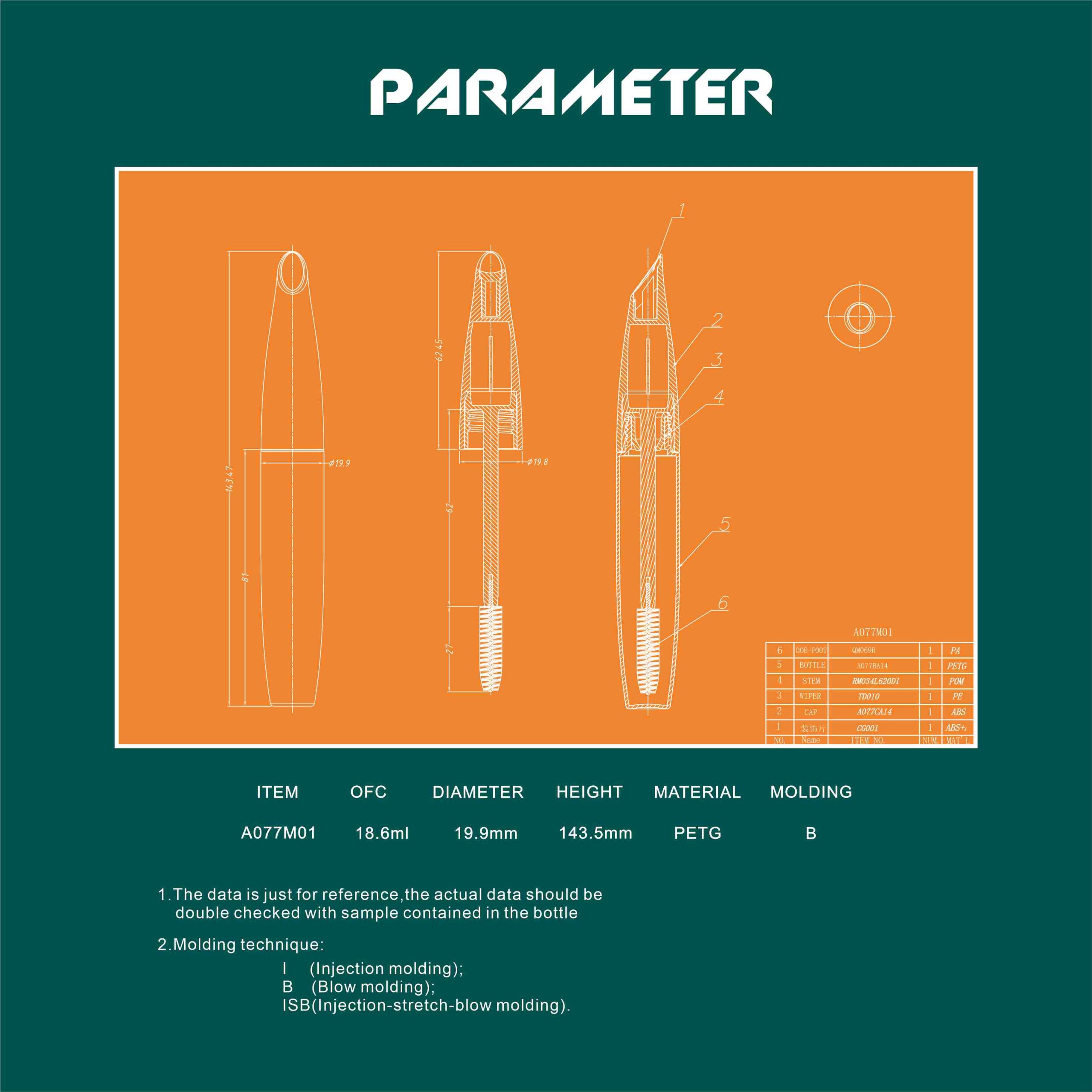 Round PETG mascara Tube, 19.9mm Diameter, Smooth Pettier Finish with OFC 18.6ml